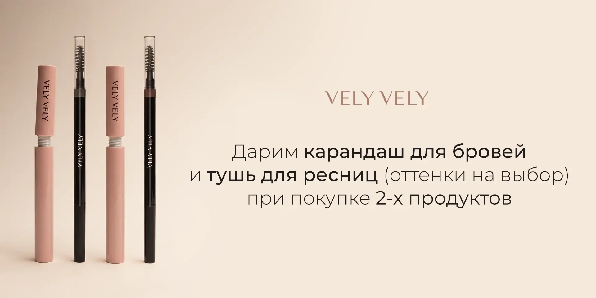 Карандаш для бровей и тушь для ресниц в подарок за 2 продукта Vely Vely