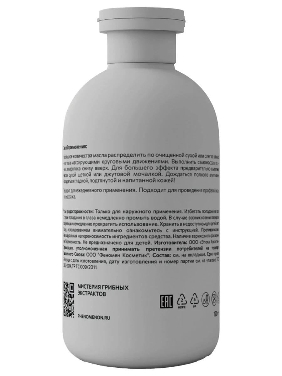 Активизирует микроциркуляцию и разглаживает рельеф кожи, обеспечивая выраженный лимфодренажный эффект. Содержит комплекс масел для питания, экстракт чаги для восстановления и разогревающие компоненты для усиления действия. Регулярное применение уменьшает отечность и проявления целлюлита.