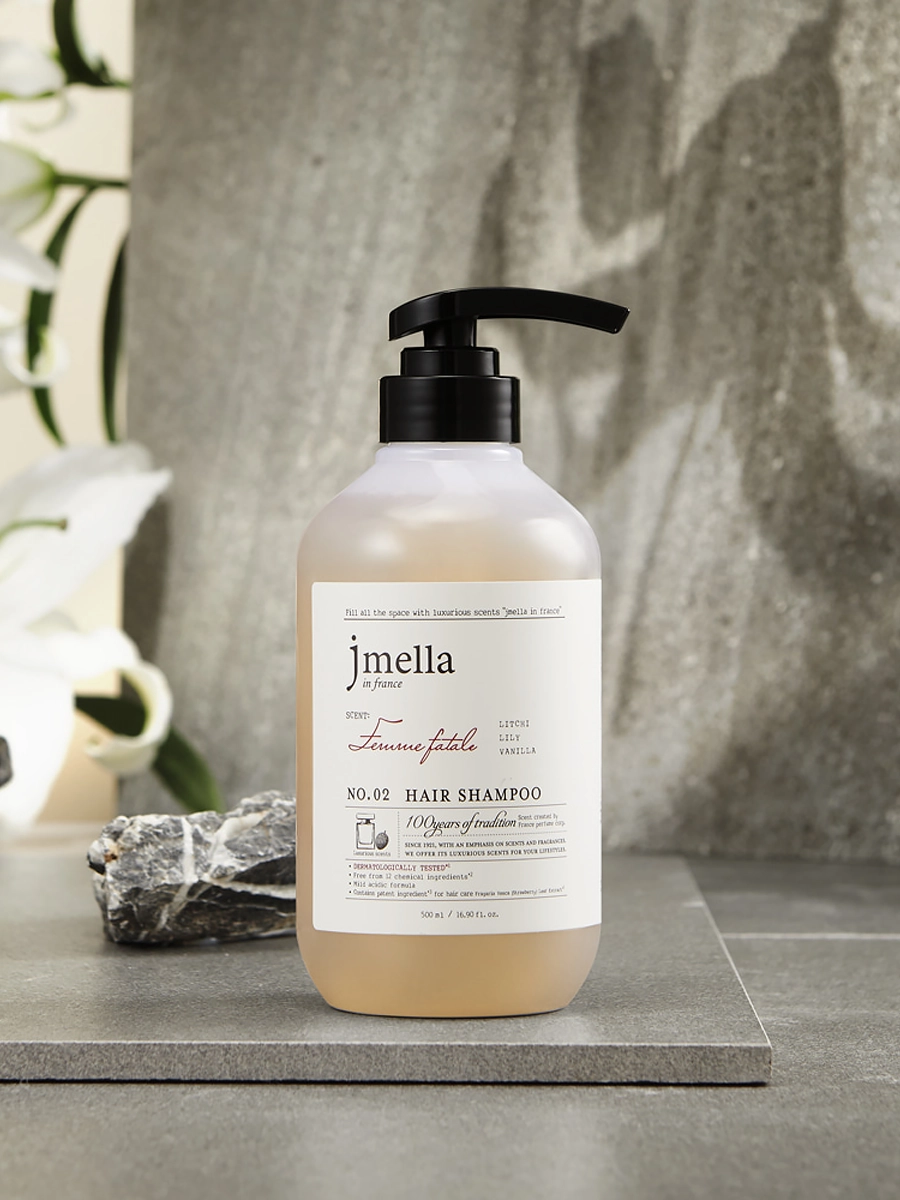 Деликатный очищающий шампунь с низким уровнем pH бережно очищает волосы и кожу головы, дарит волосам потрясающий изысканный аромат «Femme Fatale» и ослепительную красоту. Шампунь включает бетаин, алоэ и растительные экстракты центеллы, клубники и хауттюйни, которые в комплексе укрепляют и восстанавливают волосы, оказывают антиоксидантную защиту и препятствуют ломкости и разрушению структуры.
