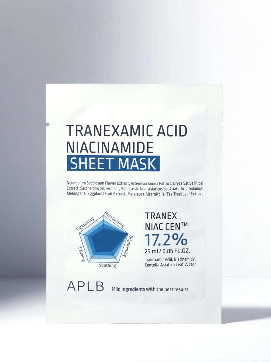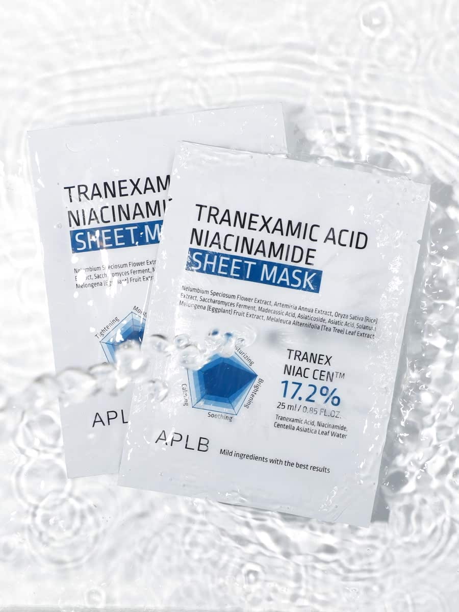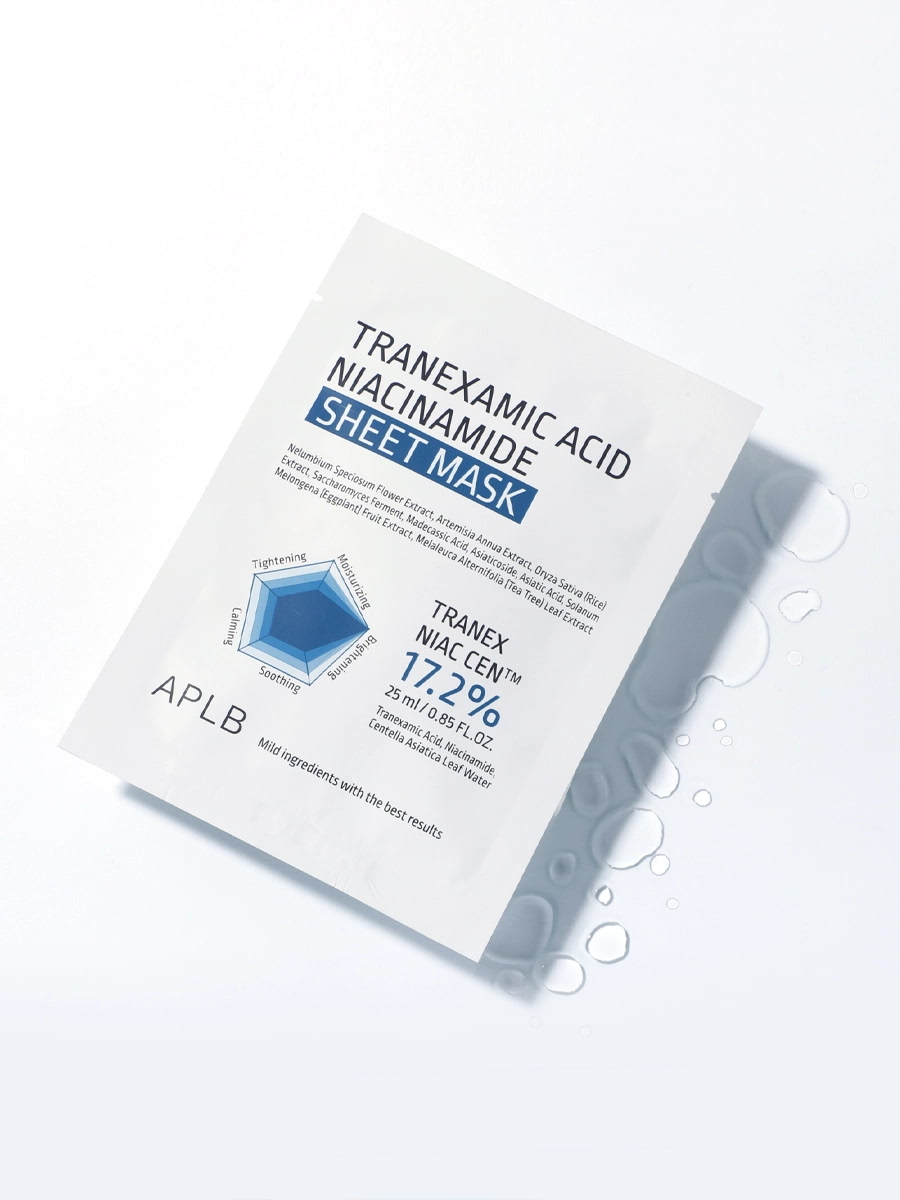 Осветляющая тканевая маска с транексамовой кислотой и ниацинамидом интенсивно насыщает влагой, активно подавляет выработку меланина, предотвращая гиперпигментацию и замедляя процессы старения кожи, выравнивает тон, устраняет тусклость и дарит коже сияющий и отдохнувший вид.