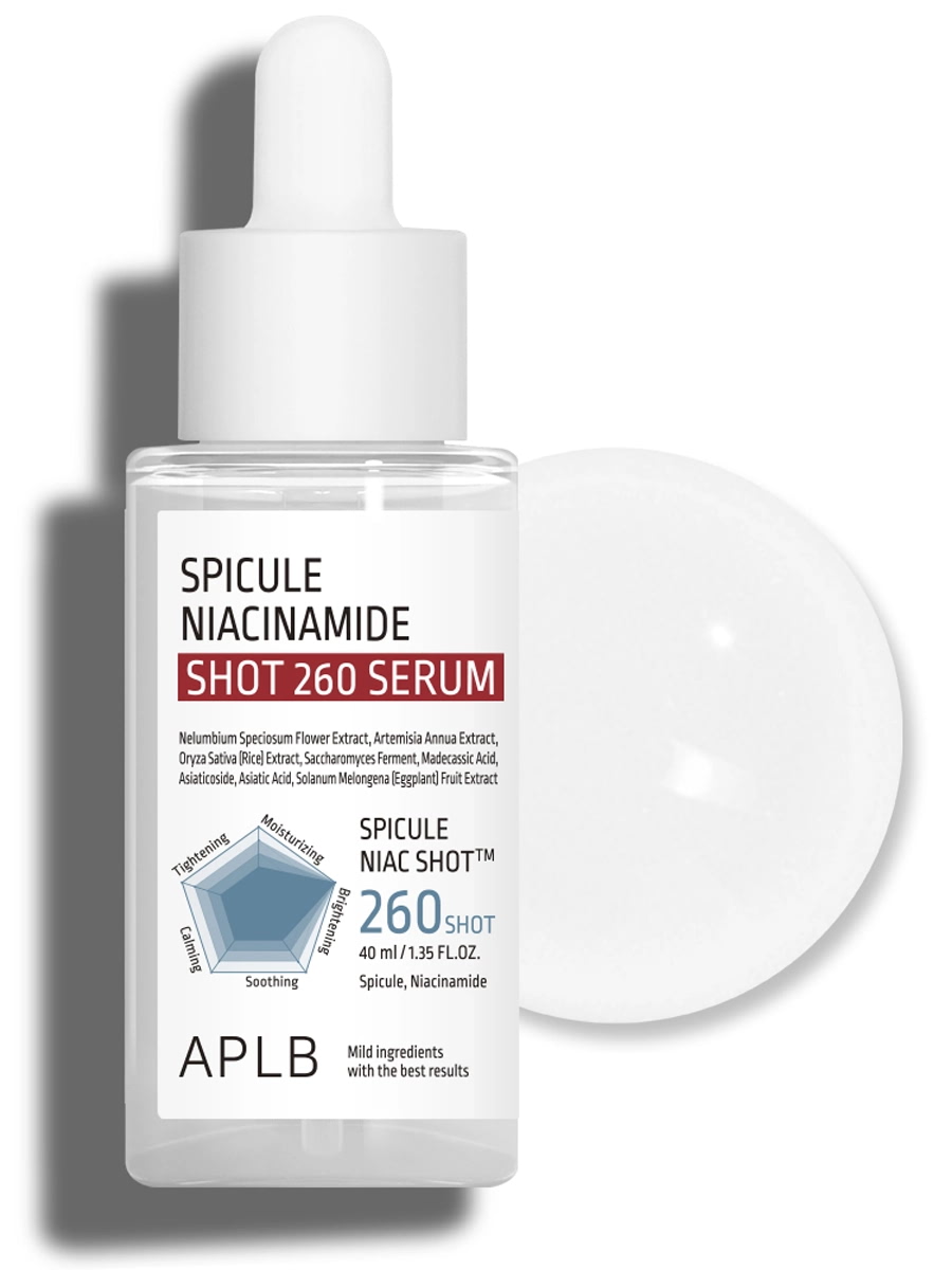 Формула создана на основе запатентованного комплекса Spicule Niac Shot™ — сочетания 260 шотов спикул и ниацинамида, синергия которых запускает процессы обновления кожи, стимулирует микроциркуляцию и укрепляет защитный барьер, благодаря чему эффективно выравнивает тон и текстуру, повышает упругость и придаёт коже гладкость и здоровое сияние.