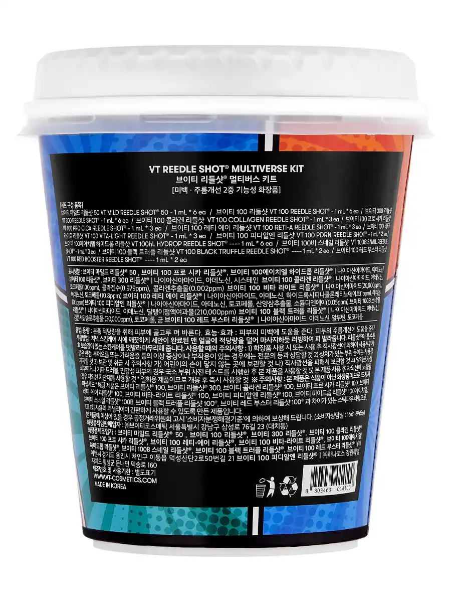 [Vita-Light Reedle Shot 100] Water, Dipropylene Glycol, Glycerin, Niacinamide, Polyglycerin-3, Caprylic/Capric Triglyceride, 1,2-Hexanediol, Betaine, Sodium Carbomer, Ammonium Acryloyldimethyltaurate/VP Copolymer, Silica, Ethylhexylglycerin, Acrylates/C10-30 Alkyl Acrylate Crosspolymer, C12-14 Alketh-12, Hydroxyethylcellulose, Hydroxyacetophenone, Caprylyl Glycol, Adenosine, Tromethamine, Butylene Glycol, Melia Azadirachta Leaf Extract, Disodium EDTA, Melia Azadirachta Flower Extract, Cyamopsis Tetragonoloba (Guar) Gum, Curcuma Longa (Turmeric) Root Extract, Agar, Xanthan Gum, Ubiquinone, Centella Asiatica Extract, Ocimum Sanctum Leaf Extract, Tocopherol, Ascorbic Acid, Hydrogenated Polydecene, Hippophae Rhamnoides Fruit Oil, Glutathione, Hippophae Rhamnoides Water, Propanediol, Corallina Officinalis Extract, Polyglyceryl-10 Pentalaurate, Astaxanthin, Hydrogenated Phosphatidylcholine, 다이Sodium Phosphate, Polysorbate 60, Retinyl Palmitate, Eriobotrya Japonica Leaf Extract, Sodium Phosphate, Sodium Lauroyl Glutamate, Mentha Viridis (Spearmint) Extract, Sodium Hyaluronate, Propolis Extract, Ferulic Acid, Asiaticoside, Asiatic Acid, Madecassic Acid, Madecassoside