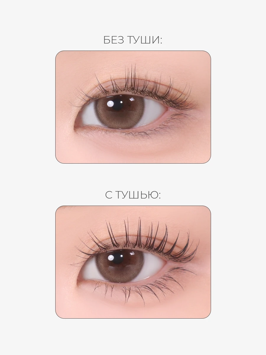 Тушь глубокого чёрного цвета служит идеальным завершающим акцентом в макияже, придавая взгляду выразительность и четкость.