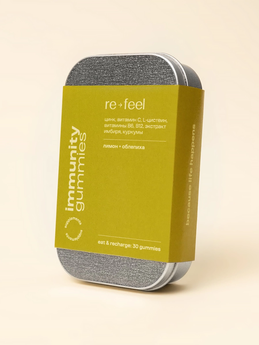 В 2-x мармеладках — дневная норма витамина С (60 мг), цинка (15 мг), витамина B6 (4 мг), витамина В12 (4 мкг), L-цистеина (100 мг)