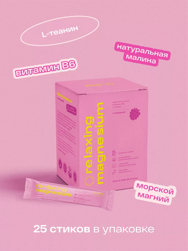 Морской магний с малиной в стиках обеспечивает укрепляющее воздействие на сердце, кости и зубы, улучшает память и настроение, снижает тревогу и стресс, а также избавляет от бессонницы.