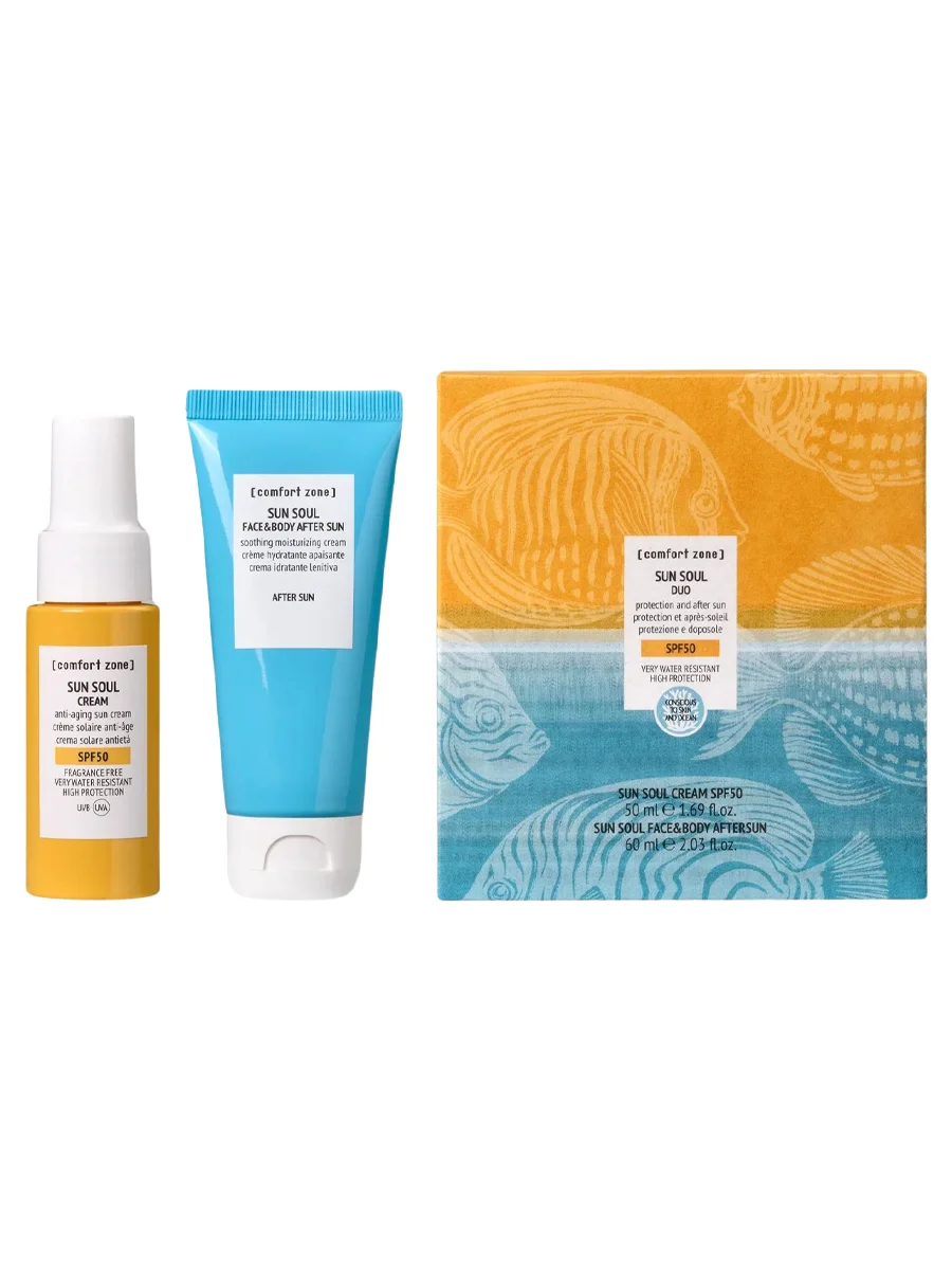 Набор из двух средств для кожи до и после загара: окажут защиту от ультрафиолетового излучения, тем самым обезопасив от солнечных ожогов и преждевременного старения кожи, обеспечат глубокое увлажнение и успокоят раздраженную кожу.