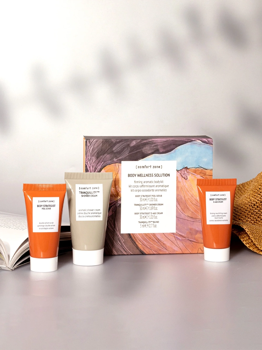В составе набора travel-версии бестселлеров бренда из линеек Body Strategist и Tranquillity™ для ухода за кожей тела.