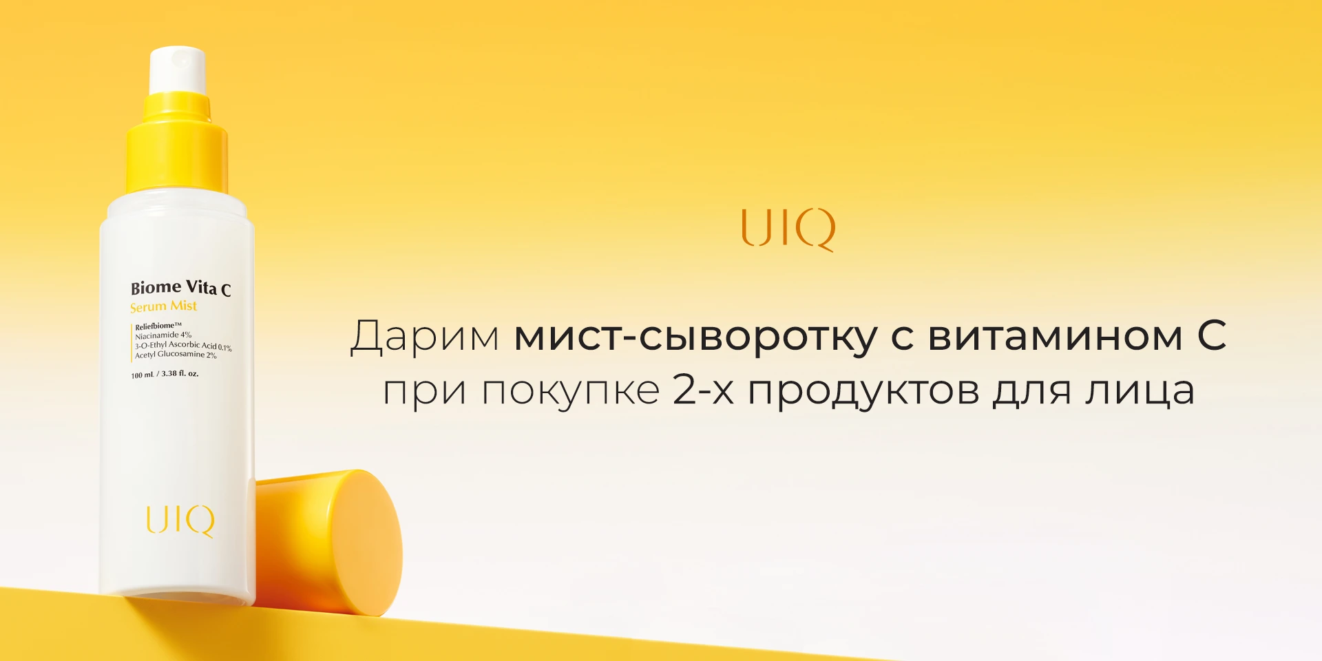 При покупке 2 полноразмерных продуктов для лица UIQ получите в подарок мист-сыворотку с витамином С, 100 мл для мгновенного сияния кожи!