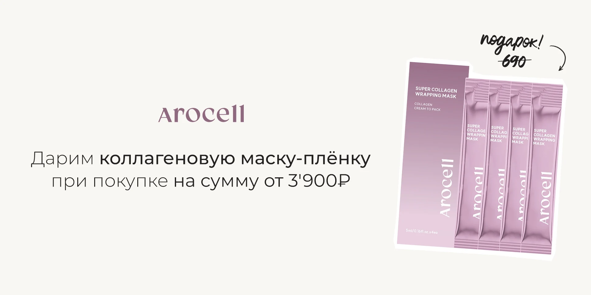 Купите продукты Arocell на сумму от 3'900₽ и получите в подарок коллагеновую маску-плёнку для сияния и гладкости кожи!