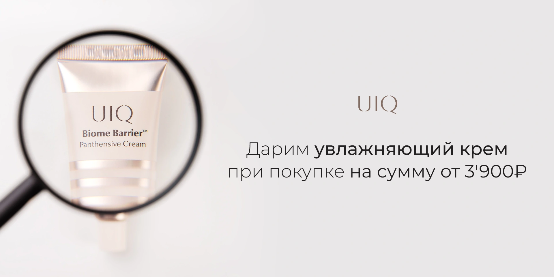 Купите продукты UIQ на сумму от 3'900₽ (после применения всех скидок и списания бонусов) и получите в подарок восстанавливающий крем с пантенолом, 10 мл!