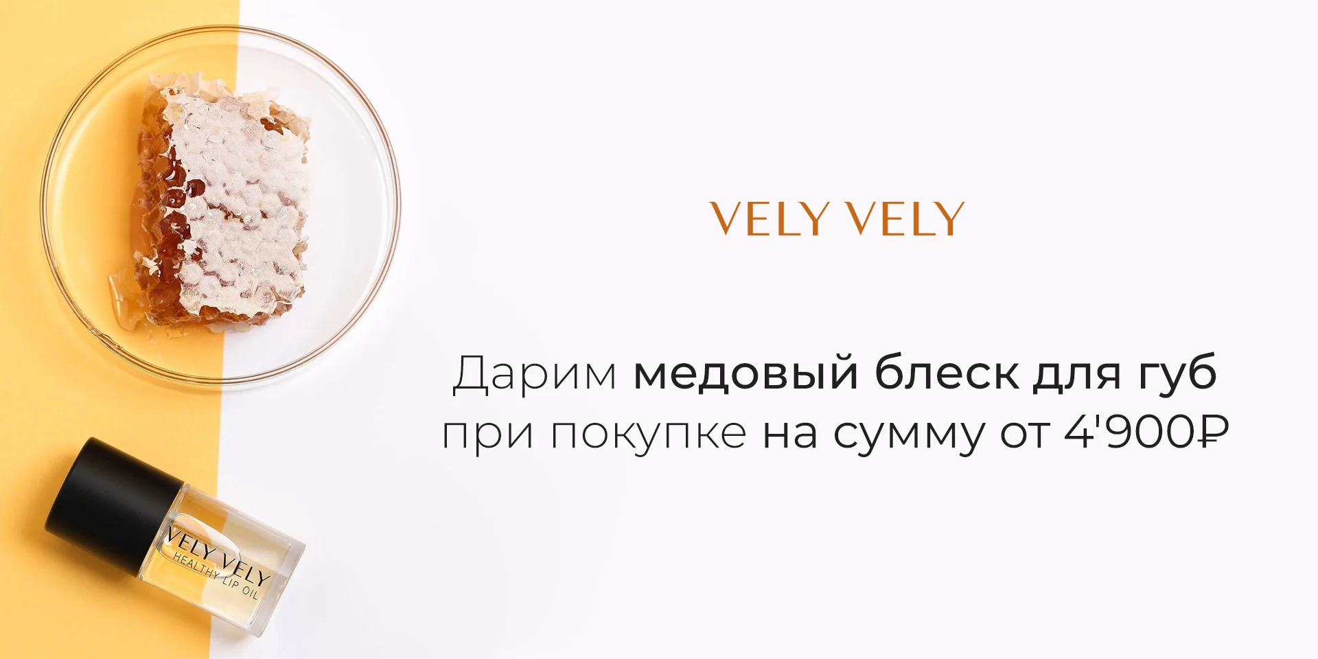 Акция Vely Vely: масло для губ с мёдом в подарок при покупке на 4 900₽